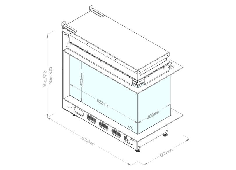 De Faber e-MatriX 800/500 RD is ontworpen als room divider, met een indrukwekkend vuurzicht van 820 x 500 mm en buitenmaten van 1012 x 870 x 553 mm. De e-MatriX burner creëert een realistisch vlammenspel dat je kunt personaliseren met decoraties zoals een houtset, witte kiezels of acrylic ice.